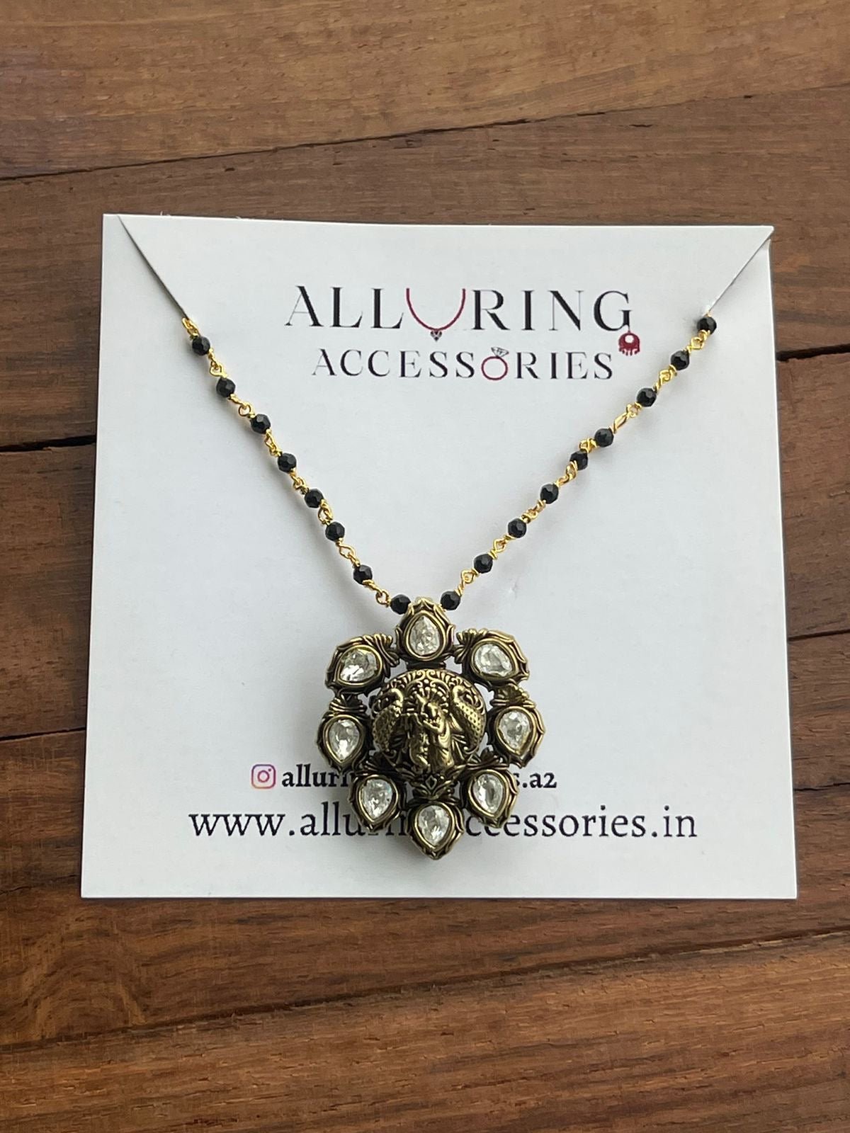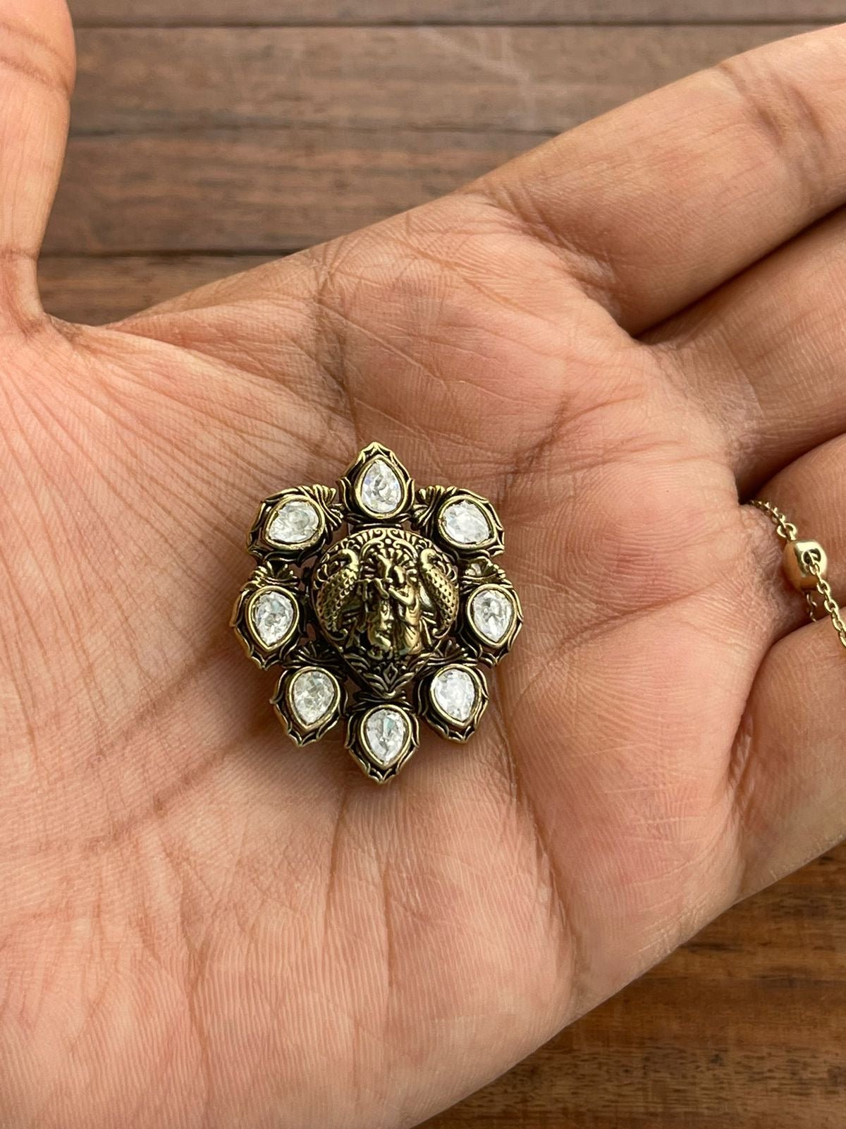 Antique finish moissanite stones Lord radha krishna dual peacock locket