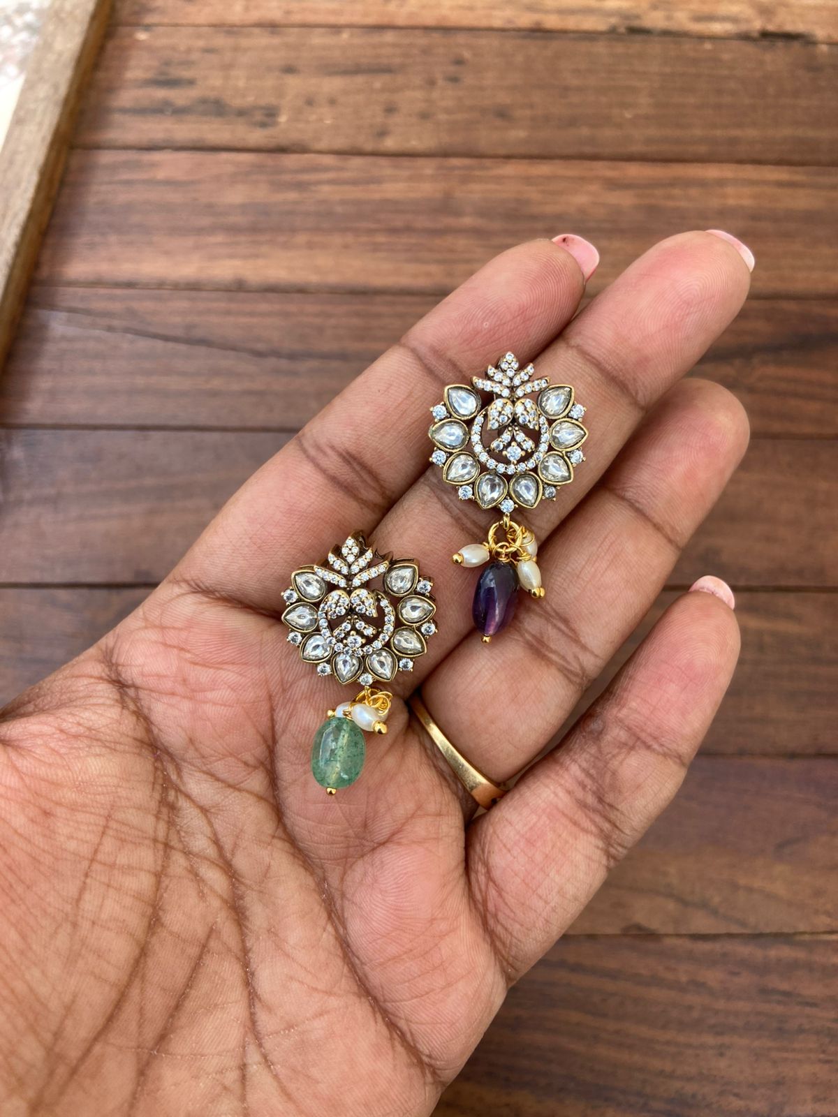 Designer diamond finish victorian locket black beads necklace