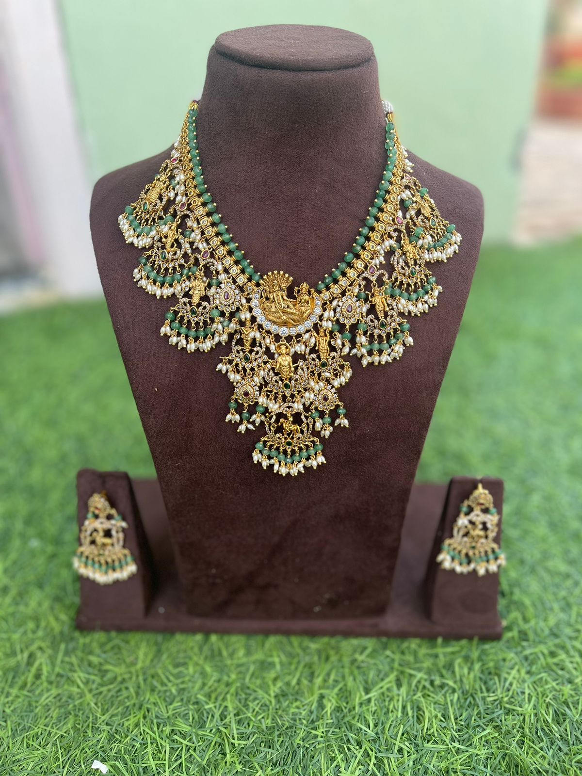 Heavy victorian dasavatar guttapusalu necklace with earrings