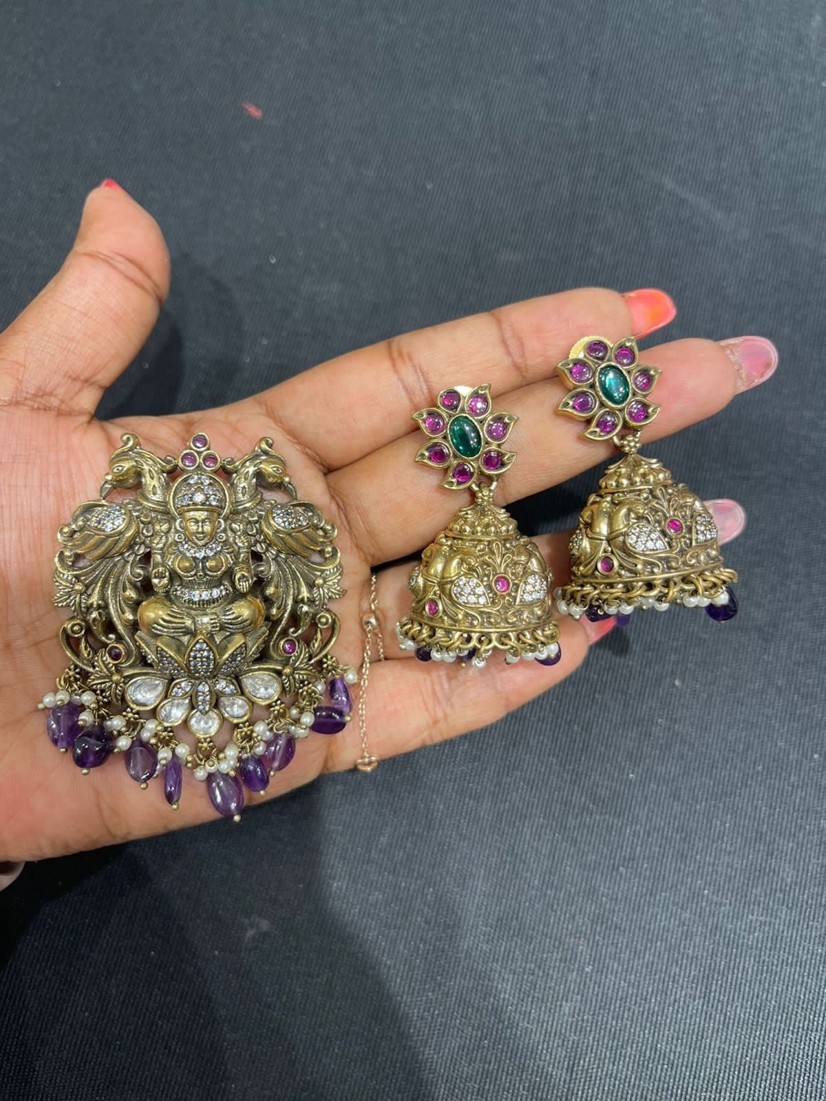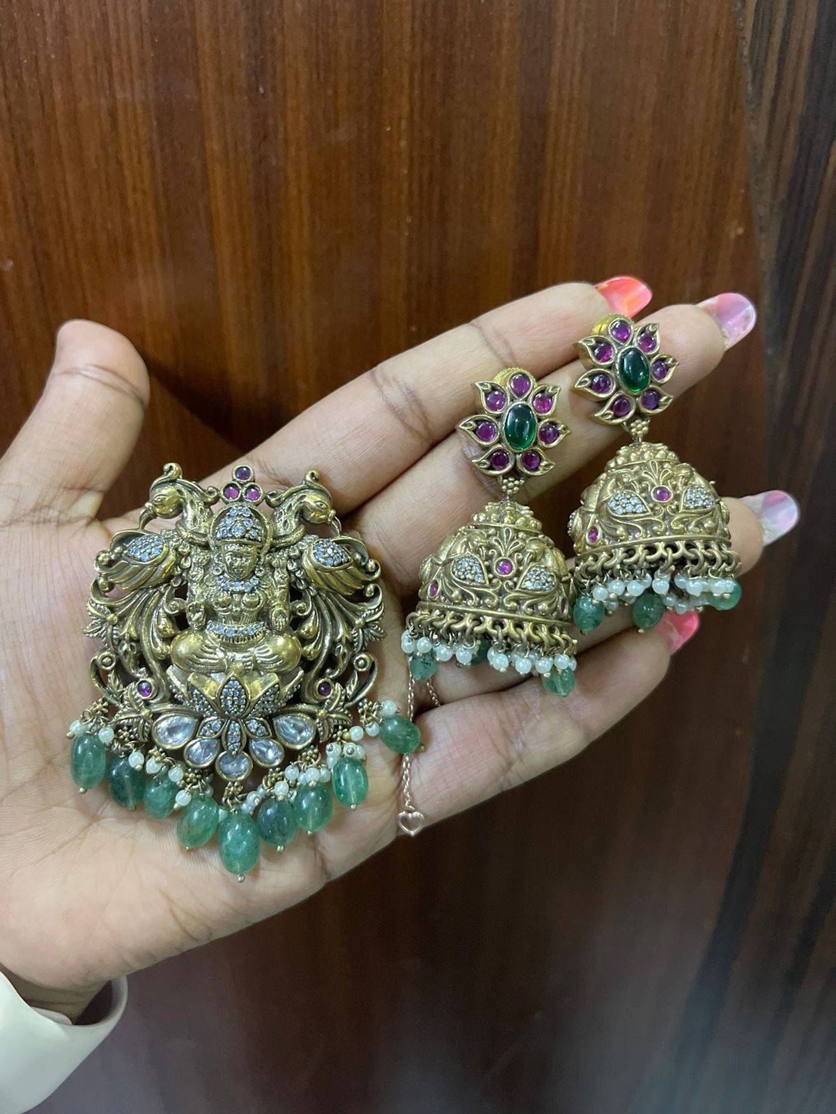 Peacock lakshmi locket antique with jhumkas