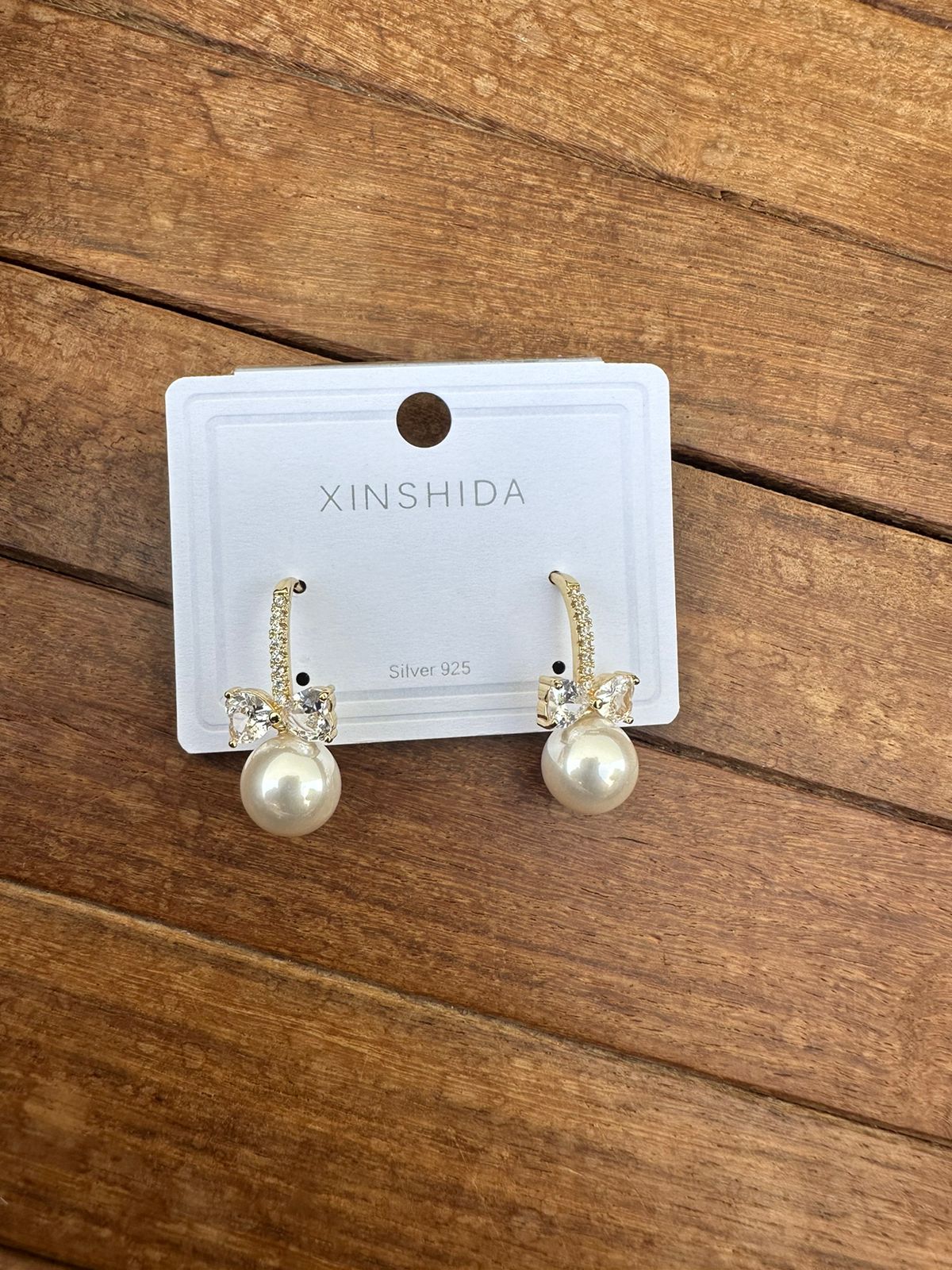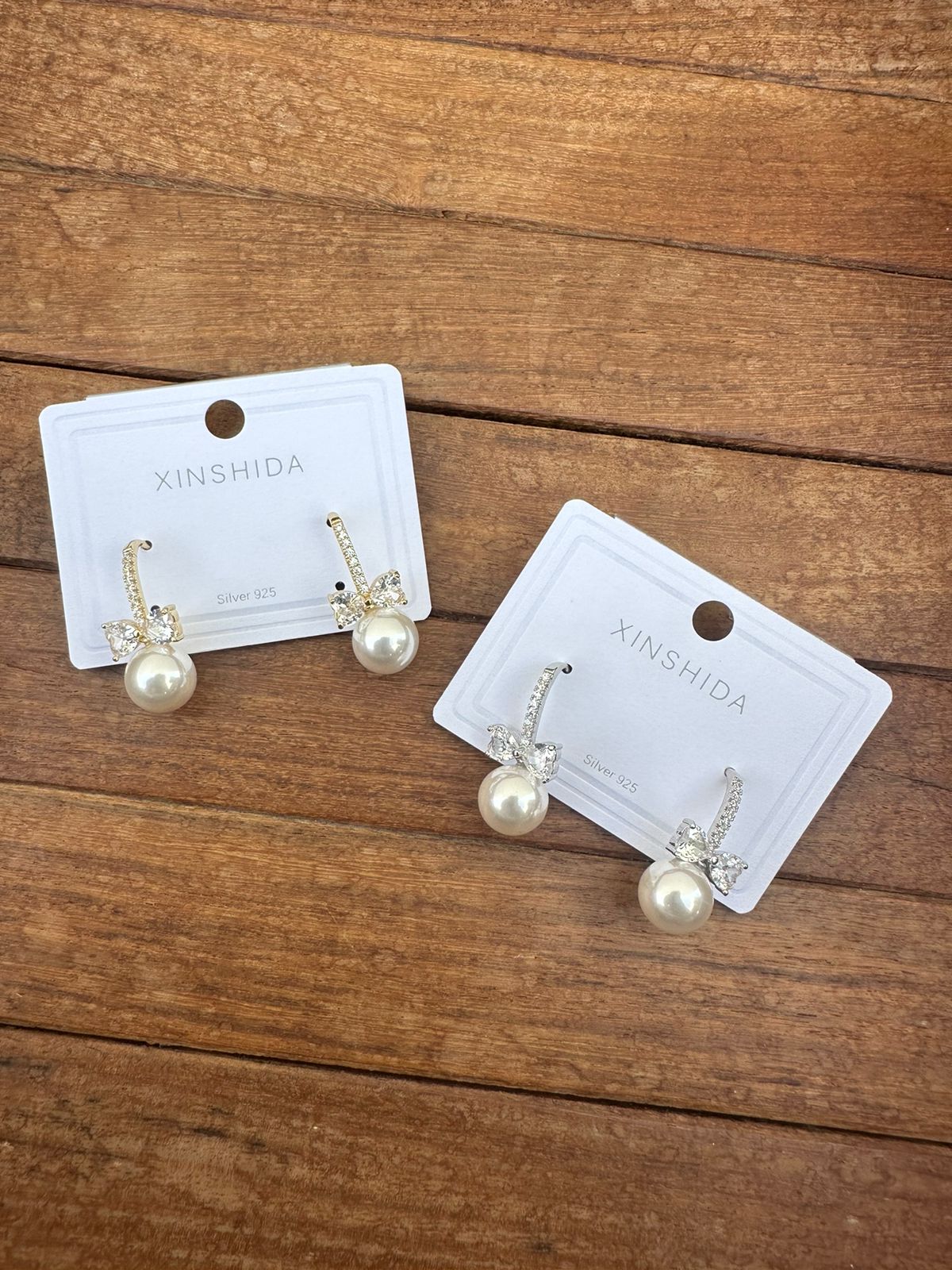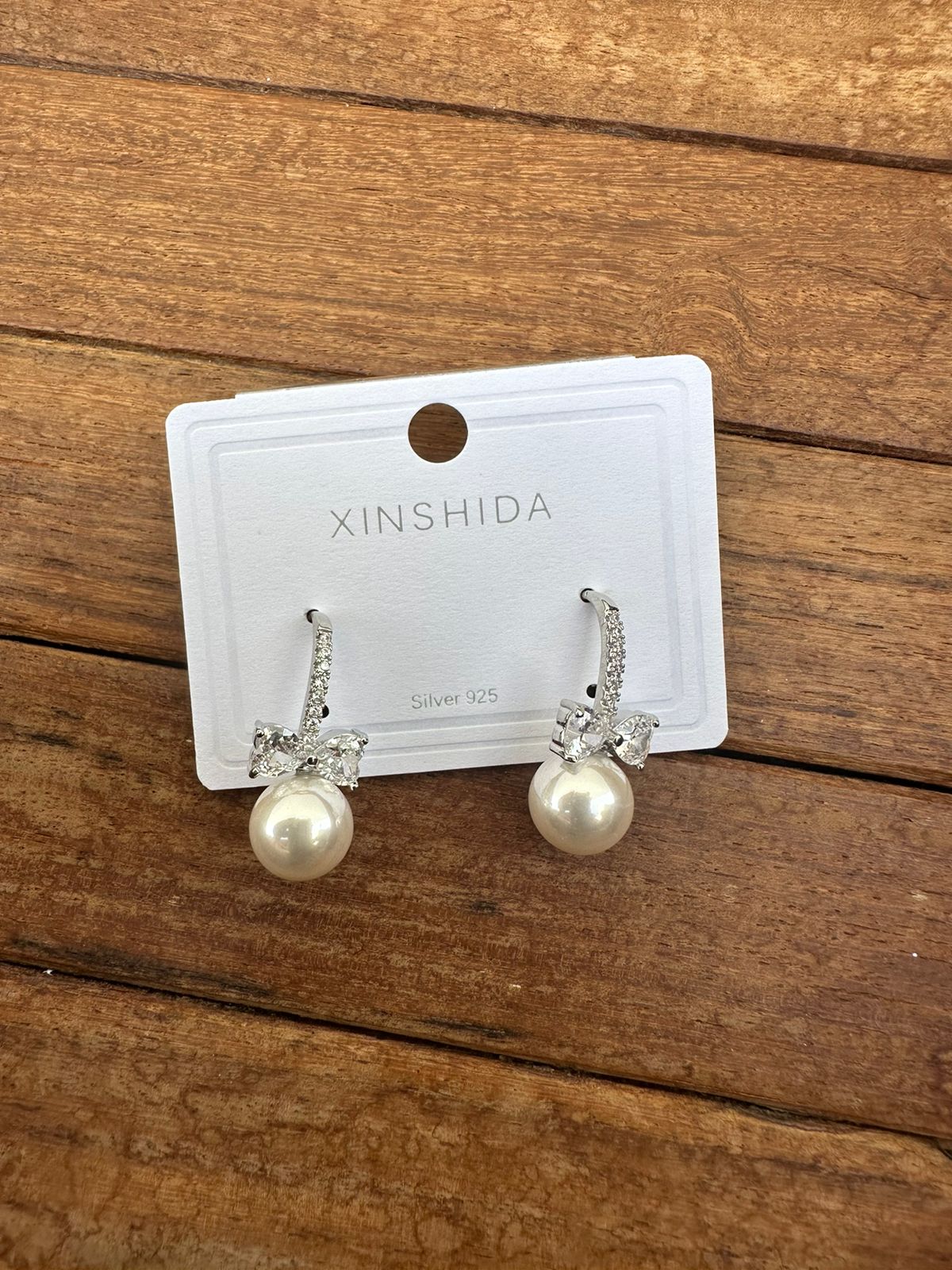 स्टर्लिंग सिल्वर धनुष हृदय मोती हुक