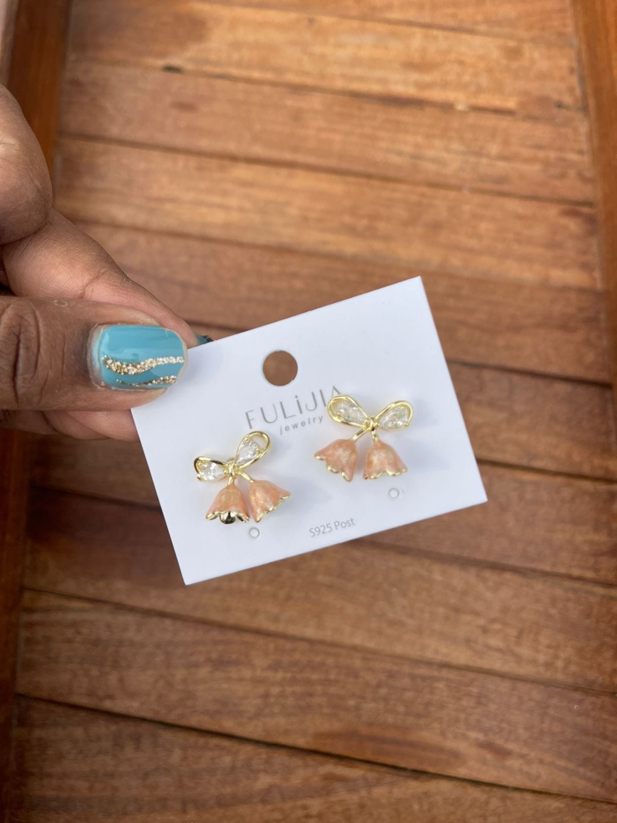स्टर्लिंग सिल्वर धनुष ट्यूलिप फूल स्टड