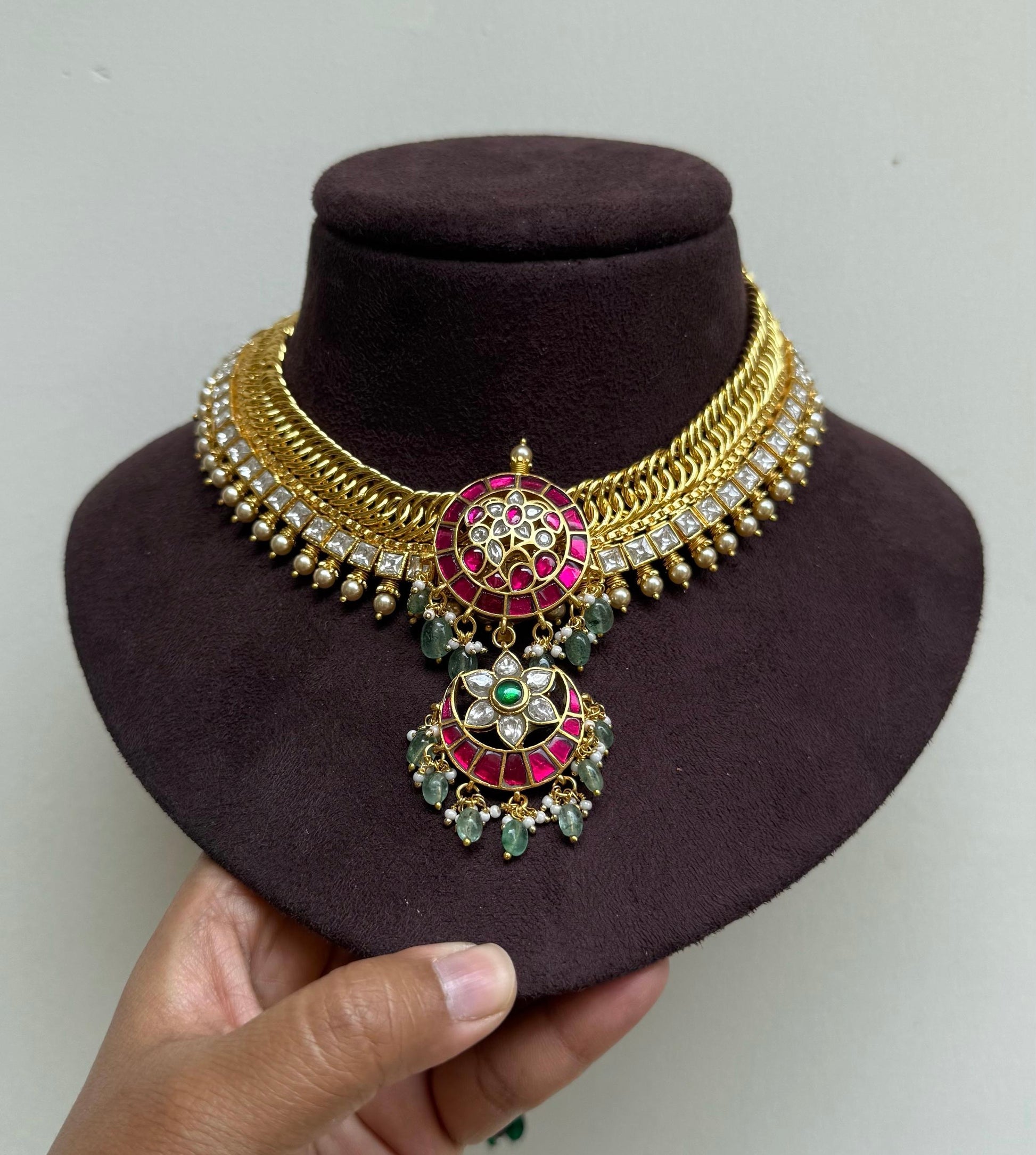 3 in 1 Detachable locket heavy real kundan jalebi necklace