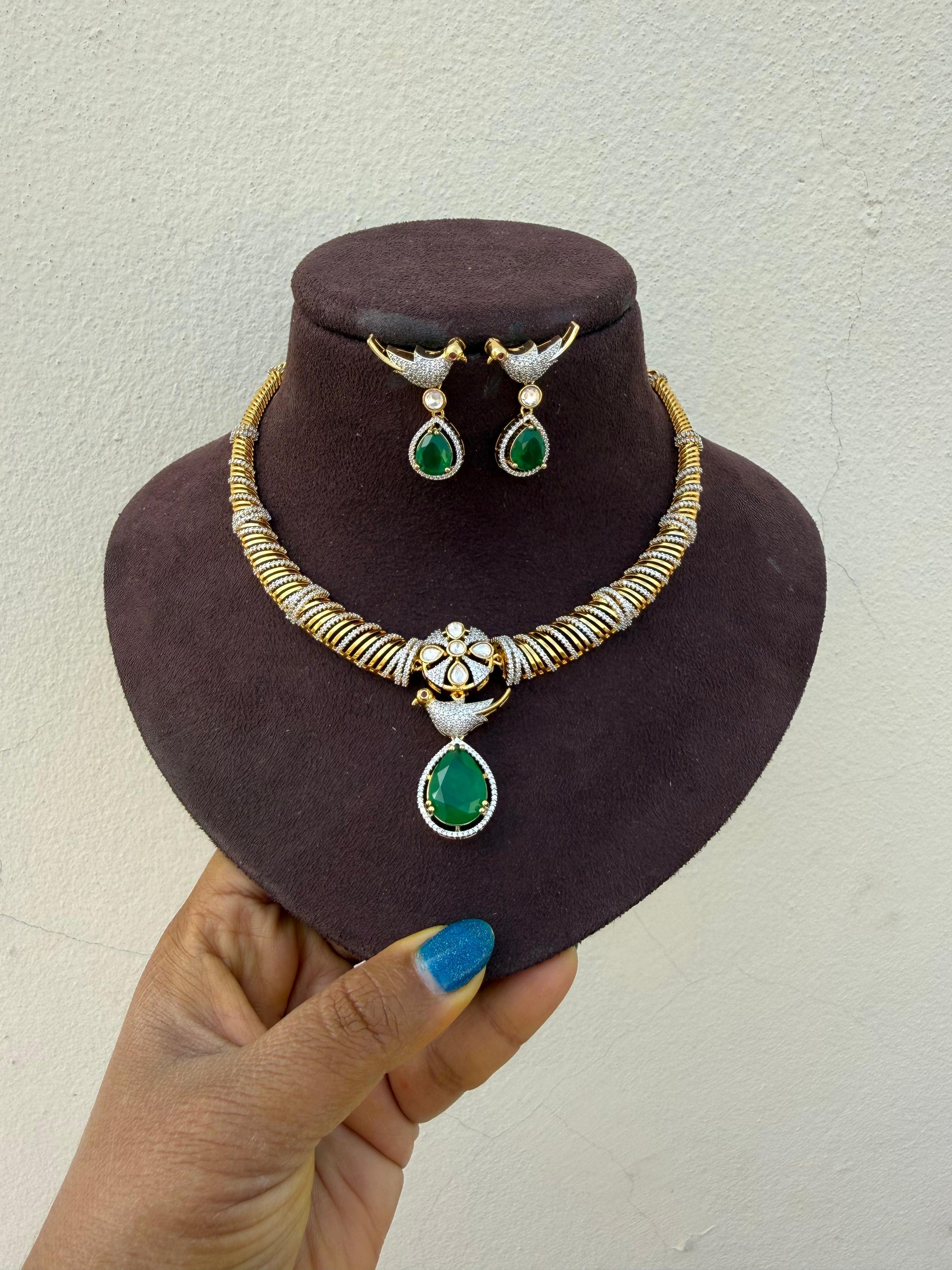 Two tone parrot kante necklace with studs